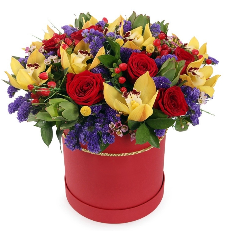 Гиперикум, Краспедия, Орхидея, Роза, Статица |